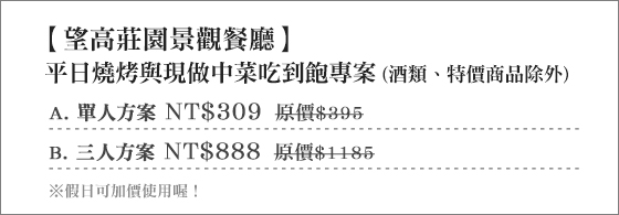 整理資訊大致有分享文、開箱文、試用文、評鑑文、推薦文、是否便宜、優缺點等資訊.下面是整理過的資料;有望高莊園夜景餐廳-平日燒烤與現做中菜吃到飽與其他類似值得參考的商品清單.最近有些網友在問望高莊園夜景餐廳-平日燒烤與現做中菜吃到飽要去哪裡買最便宜呢?超多的鄉民很都說望高莊園夜景餐廳-平日燒烤與現做中菜吃到飽 無敵好的!ANASTASIA一向是個理性的消費者,能讓他讚賞的商品不多了! |  | 望高莊園夜景餐廳-平日燒烤與現做中菜吃到飽-台中大肚山首推景觀餐廳,登高望遠180度俯瞰全台中繁華夜景,美味燒烤與中菜吃到飽,給你超過癮浪漫體驗吃到飽!只要309元起即可享有【望高莊園景觀餐廳】原價最 售價:309