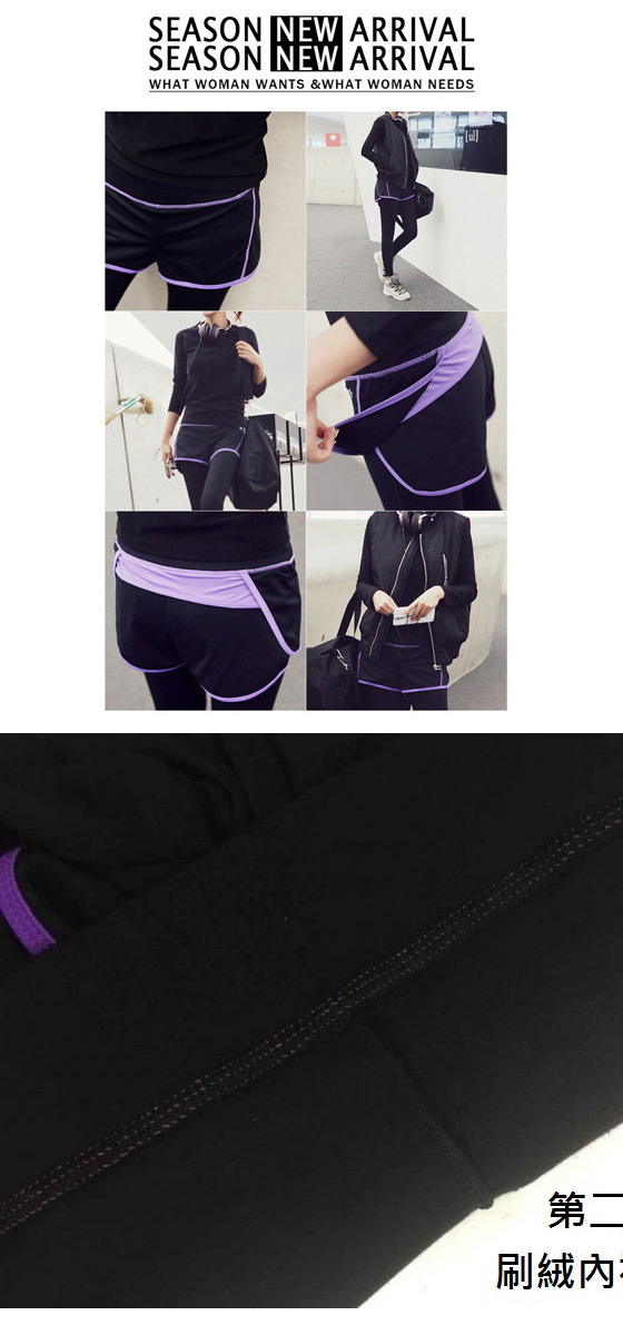 | 加絨假二件超彈力九分褲-運動也要走潮流風!假兩件式設計,任意搭配穿出休閒風,布料高彈性運動自如,剪裁設計修飾臀腿超顯瘦!平均每件最低只要319元起(含運)即可購得加絨假二件超彈力九分褲1件/2件/3件 售價:319