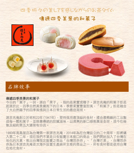 走過路過,千萬不要錯過!請參閱詳細商品資訊源吉兆庵-消費金額抵用套券我有去遍尋各大購物網站momo購物、yahoo奇摩購物、博客來、PChome線上購物、ibon mart搜尋優惠價格!到實際到銷售的EC去看,價格就有機會再便宜一些!網路購物EC是擋不住的趨勢,可以方便比價只要用功通常都能買到相對便宜的商品!網路價格隨時會調整,請以原網購平台資料為準! |  | 源吉兆庵-消費金額抵用套券-不必去日本,也能品嚐道地和菓子!1947年創立至今,日本來台和菓子老店!平假日皆可使用,不限張數折抵平均每張最低只要425元起即享【源吉兆庵】消費金額抵用套券1張/2張/4 售價:425